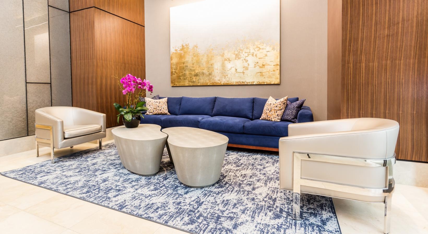 • a room with a couch and chairs